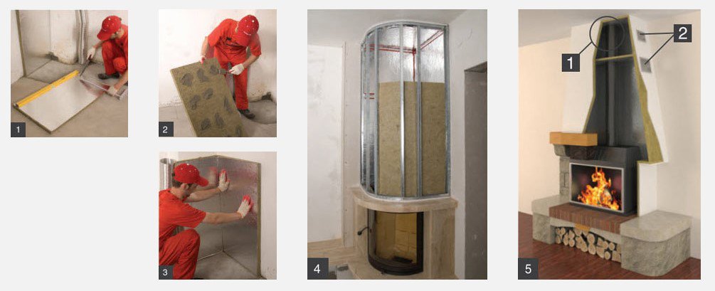 Материал защищает внутренние поверхности камина от воздействия тепла, излучаемого очагом. Предотвращает нагрев наружной отделки камина, увеличивая эффективность обогрева пространства комнаты за счёт конвекции. Материал выдерживает высокую температуру.